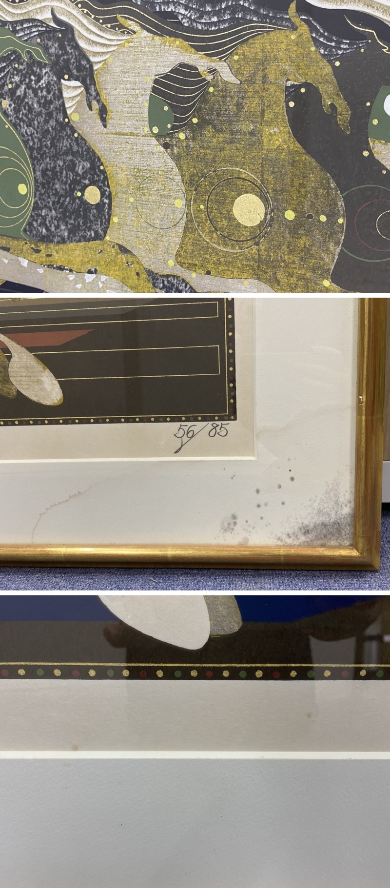 ・経年保管品のためシミやキズ、額にはヤケが見受けられます。