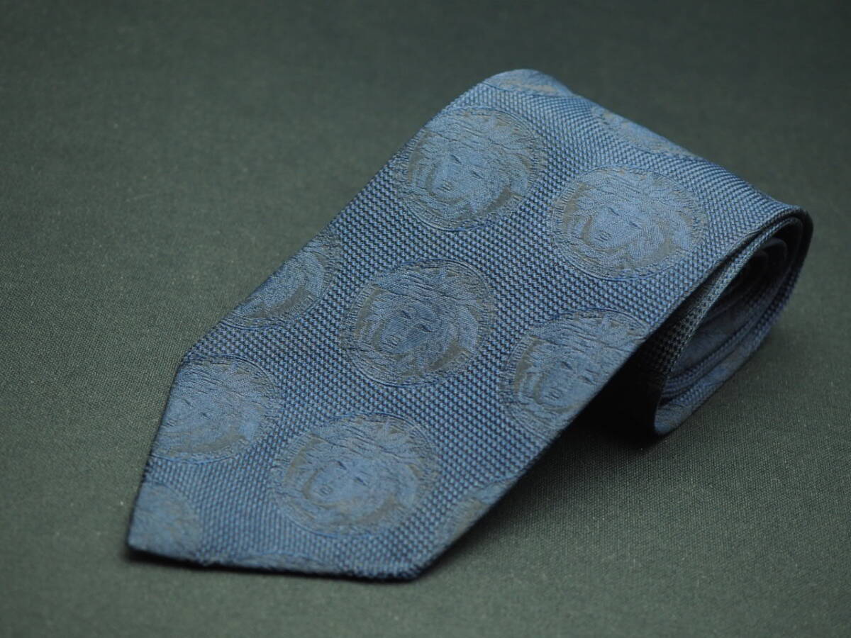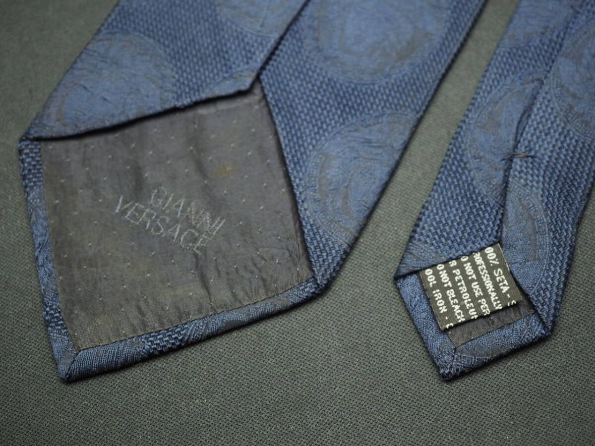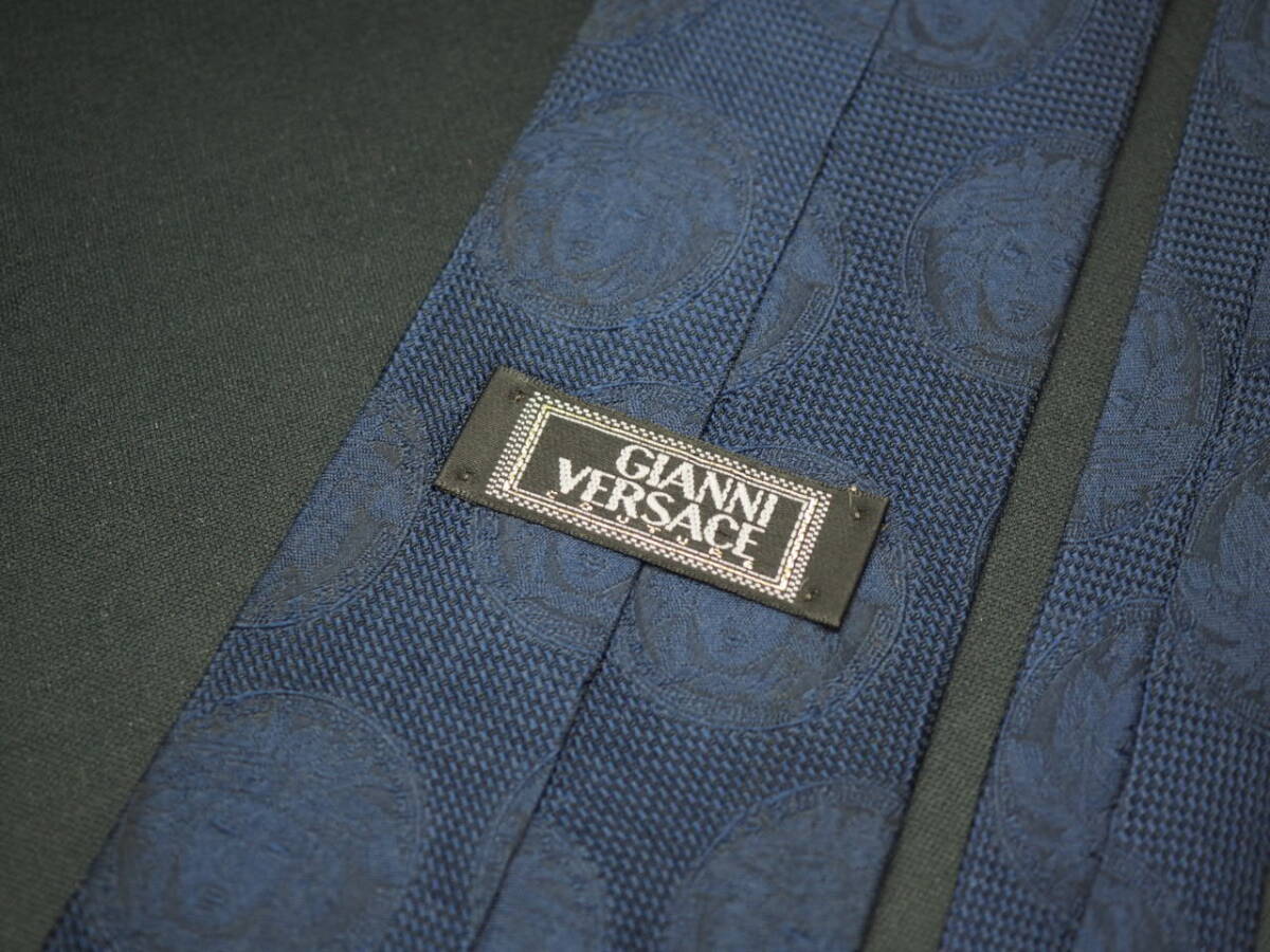 美品【VERSACE ヴェルサーチ】 G1317 ロゴ ネイビー系 SILK ブランド ネクタイ 古着 良品 転売 仕入
