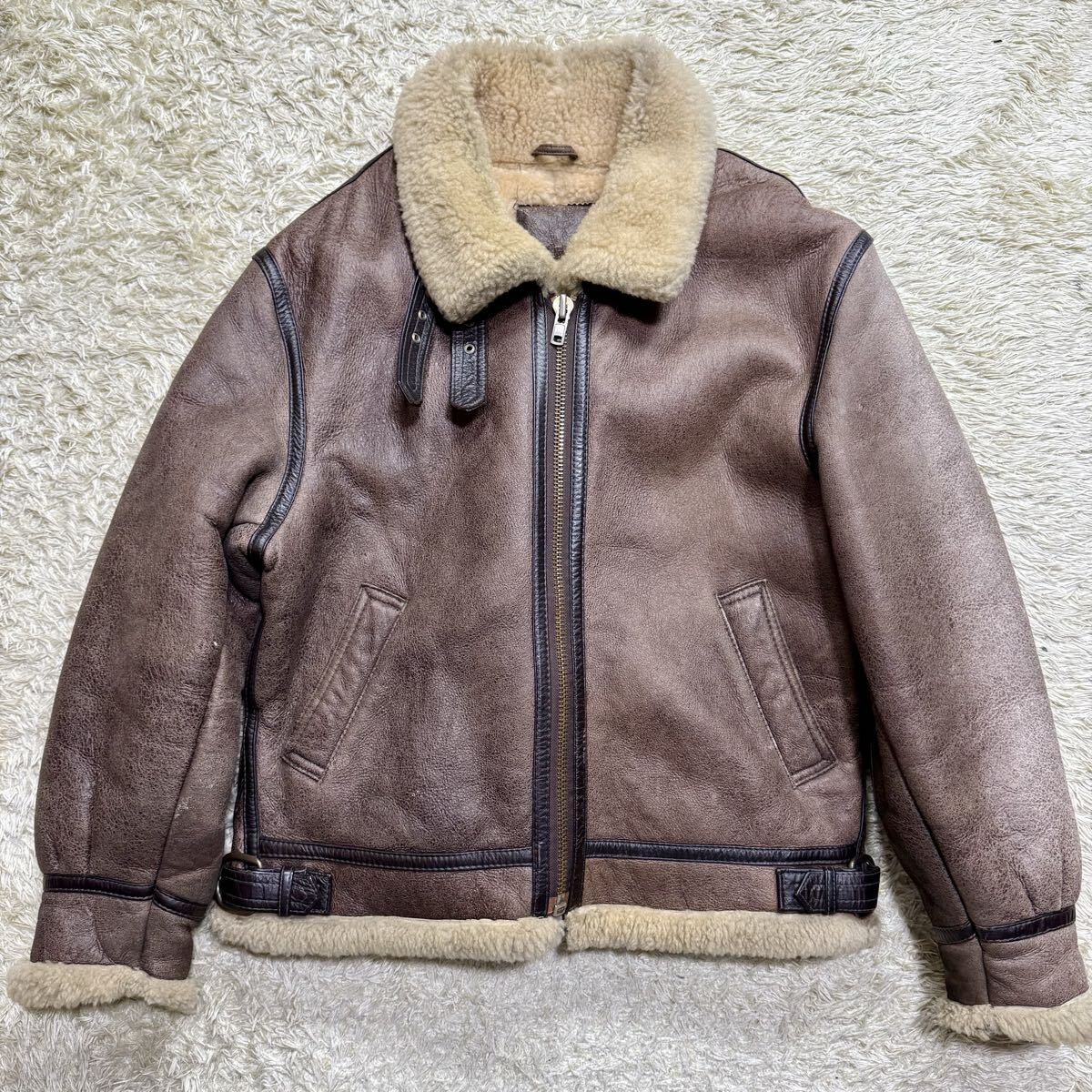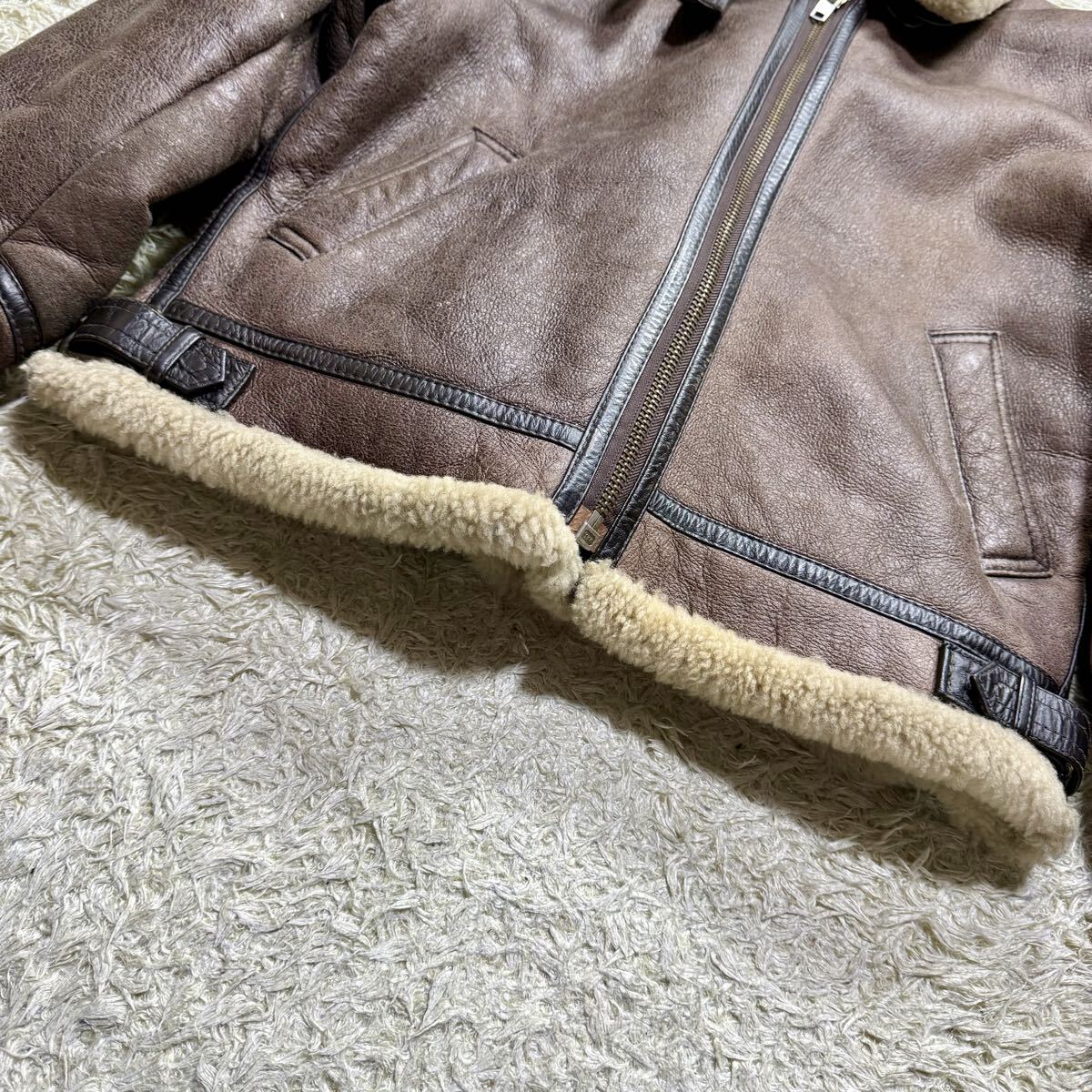 L相当!!! 《男の戦闘服》B-3 ムートンジャケット フライトジャケット ボア ボンバージャケット ラムレザー ブラウン 肉厚 極暖 メンズ