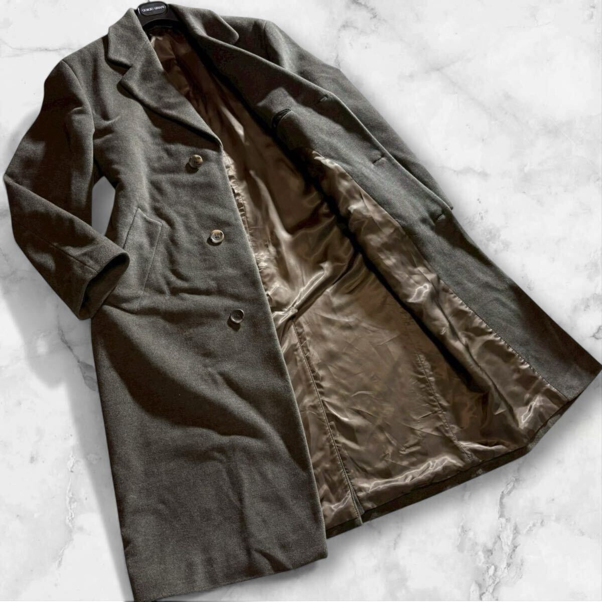 最高傑作!! マキシ丈119cm!! HUGO BOSS ヒューゴボス チェスターコート ロングコート シングル アンゴラ ウール メンズ 46 M相当 グレー