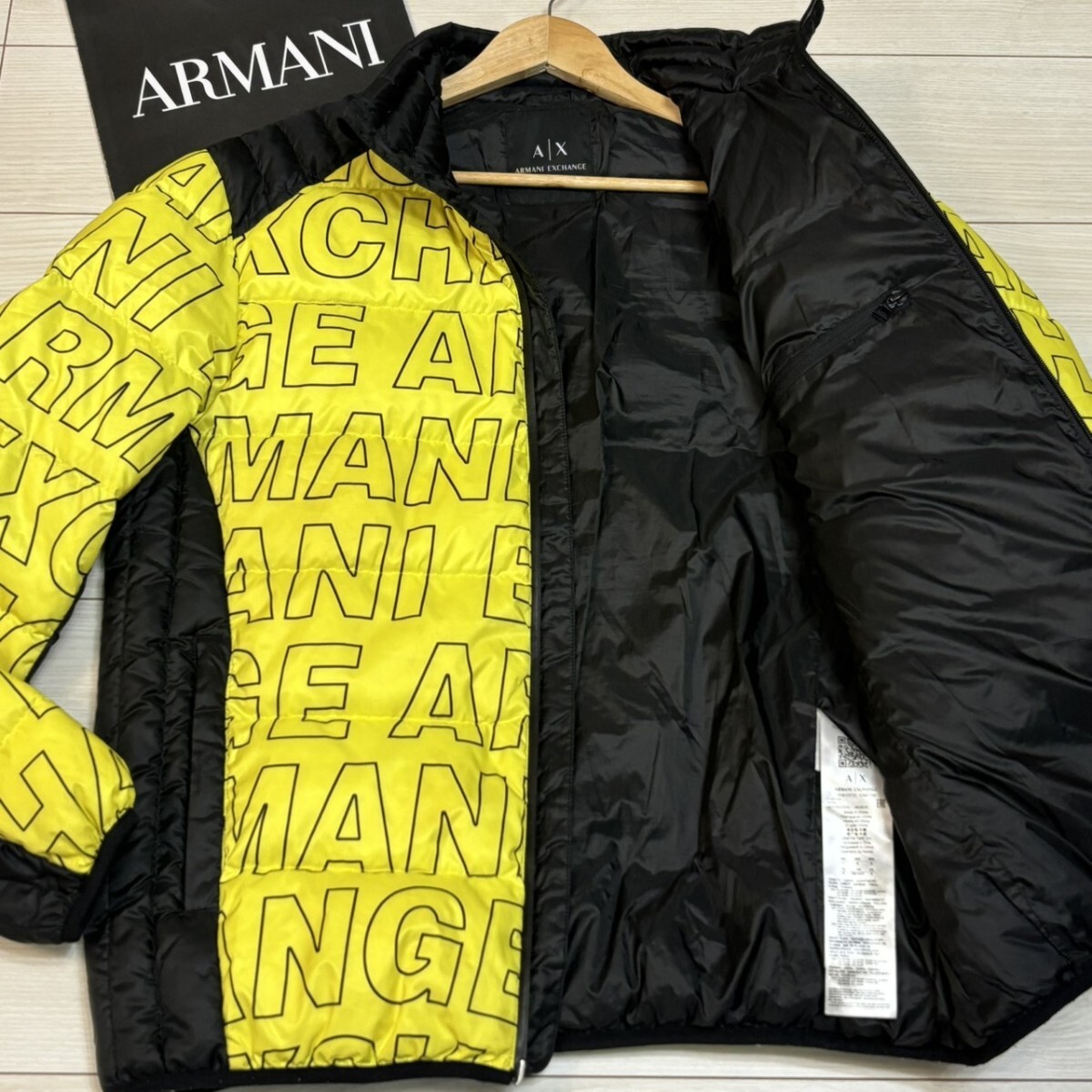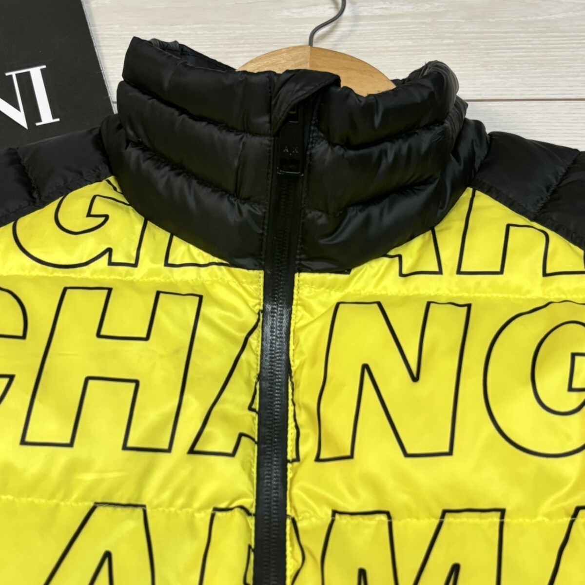 極美品/Lサイズ●ARMANI EXCHANGE アルマーニ エクスチェンジ ダウンジャケット ブランドロゴグラフィックプリント柄 イエロー ブラック