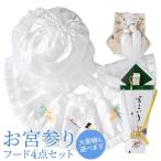 お宮参り 小物セット よだれかけ 帽子 お守り 鶴 刺繍 白 洋フード帽 スタイ