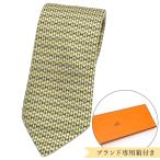 極美品 エルメス ブランド ネクタイ HERMES シルク 100% ワイドタイ ジャガード H柄 イエロー 黄色 758872T メンズ OJ10533