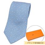 美品 エルメス ブランド ネクタイ HERMES 高級 シルク 100% レギュラータイ プリント イカリ 錨 碇 ブルー 青 水色 メンズ OJ10536