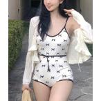水着 「Jasmine」リボン柄ワンピース水着 ポーチ付き レディース