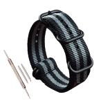 23mm ブラック/グレー 腕時計ベルト厚いナイロン バンド 簡単交換ベルト男性用