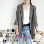 スーツジャケット レディース 春夏 綿麻 七分袖 ブレザー リネンスーツ 薄手 40代 カジュアル テーラード ジャケット 大きいサイズ 着痩せ 通勤 オシャレ30代