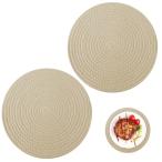 鍋敷き 2枚セット 籐編 耐熱鍋敷き天然素材 籐マッ 亜麻 ト丸型 洗える断熱マット ナチュラル ラ