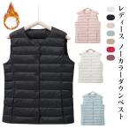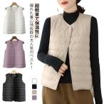 インナーダウンベスト レディース 秋冬 ノースリーブ ベスト クルーネック ジレ ノーカラー ダウンベスト 薄手 インナーダウン 軽量 きれいめ シン