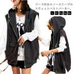 ベスト レディース フード付き おしゃれ ノースリーブパーカー 春 秋 カットソーベスト 前開き トップス ジップアップ スウェット 大きいサイズ ゆ