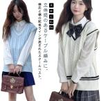 スクールベスト vネック ニットベスト 学生 制服 ベスト ニット トップス レディース 女子 高校生 コスプレ 学生服 スクールニット ケーブル編み