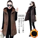 前開き ボアベスト 秋冬 ロングベスト ムートン ベスト レディース フード付き コート ジレ ボア アウター 防寒 袖なし ノースリーブ ポケット付