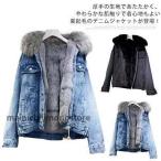 デニムジャケット 裏起毛 レディース あったか ショート Gジャン 裏ボア 裏起毛 アウター ファー フード付き デニム ブルゾン コート ファージャ