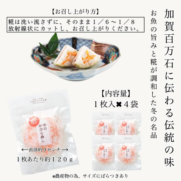 【冬季限定】天然鰤 かぶら寿し 自宅用 1枚入×4袋 かぶら寿司 かぶらずし 鰤 ぶり 北陸 石川 金沢 海鮮 お歳暮 歳暮 【B配送:チルド便】
