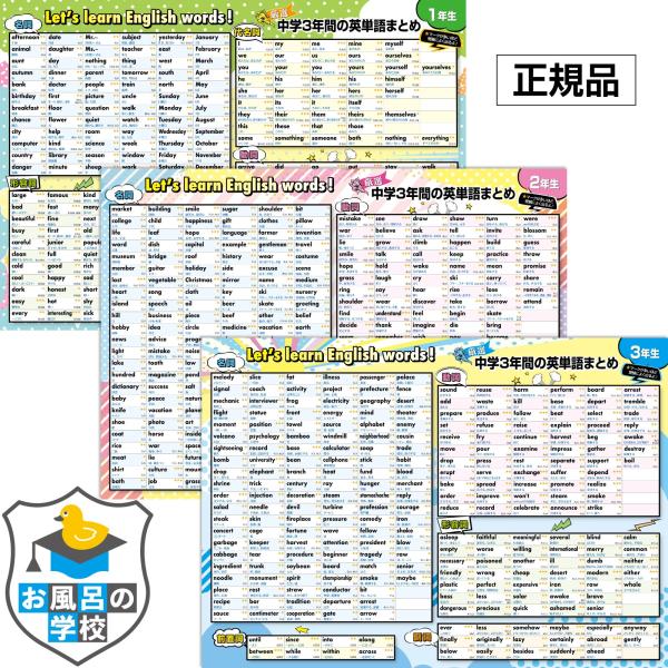 お風呂の学校 中学3年間の英単語まとめ お風呂ポスター 3枚セット 日本製 高校受験 TOEIC B3サイズ 英語 英会話 防水 耐水 学習