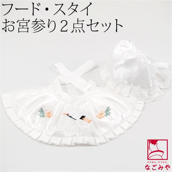 お宮参り フードセット 通年用 よだれかけ 帽子 2点セット 男女兼用 箱なし 産着 小物 帽子 涎掛け 松 鶴 刺繍入り ベビー