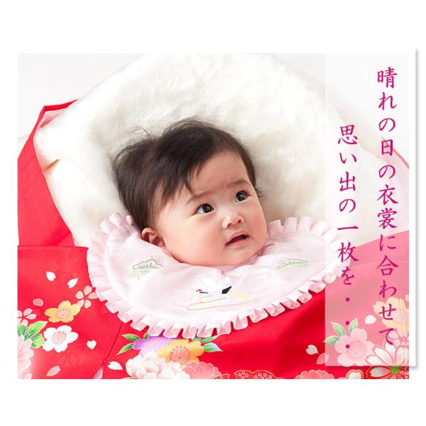お宮参り 小物 ワンタッチ よだれかけ ワイヤー型 スタイ 鶴 刺繍