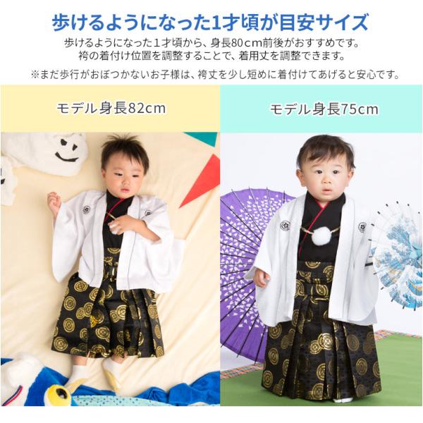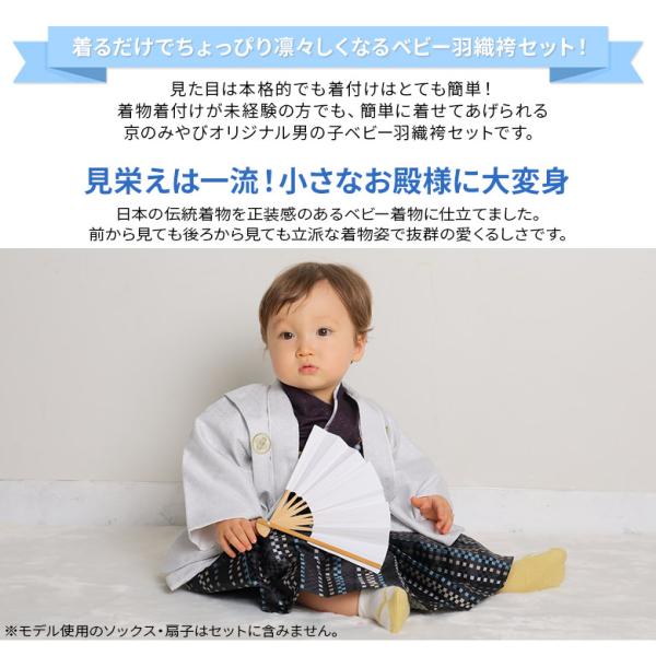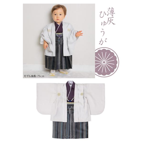 男の子 ベビー着物 羽織袴セット 初節句 端午の節句 1才 80cm 一体型 白 グレー こどもの日 子供の日 お正月 着付け簡単 衣装 衣裳 赤ちゃん