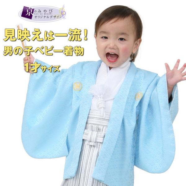 初節句 端午の節句 衣装 男の子 紋付袴セット 水色 1才 2才 羽織 着物 お祝い 80cm 90cm