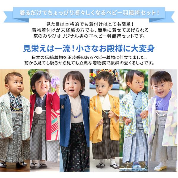 男の子ベビー着物 羽織袴セット 1才 80cm 一体型 初節句 端午の節句 こどもの日 子供の日 お正月 着付け簡単 衣装 衣裳 赤ちゃん