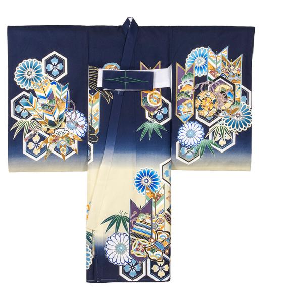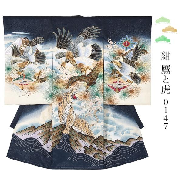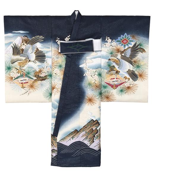産着 お宮参り 着物 初着 男の子 紺 鷹 虎 矢羽根 宝船