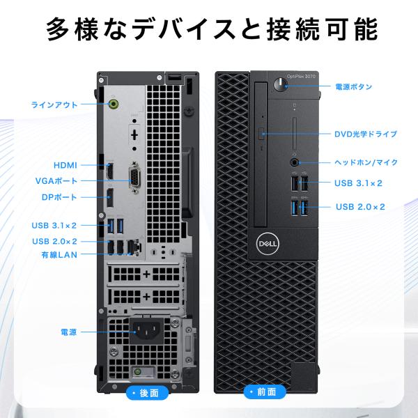 【中古PC】DELL OPTIPLEX 3070 SFF デスクトップパソコン i3 9100 i5 9500 第9世代 最大32GB 最大SSD2TB 動作確認済 Win11 Pro 搭載 【整備済み品】爆買