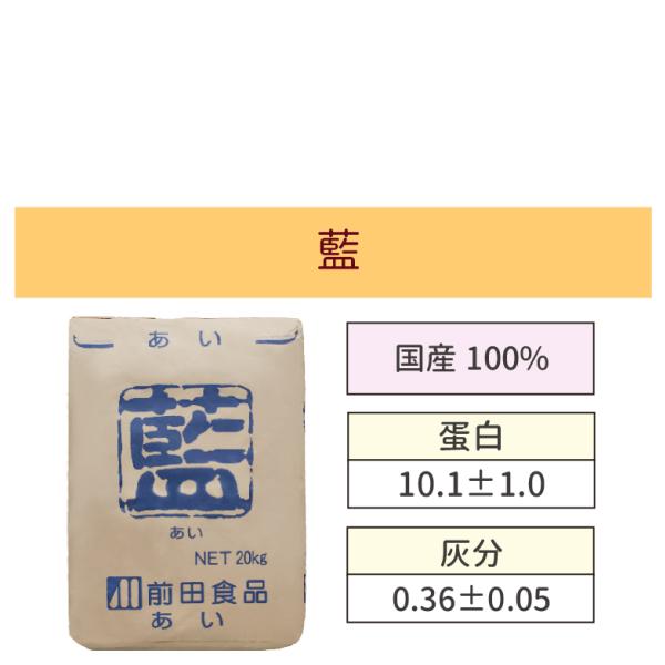 国産うどん用粉 白くてつるつるしたおいしいうどんが作れます 中力粉 藍 20kg 小麦粉 国産 うどん 餃子 中華まん きしめん 中華麺 業務用 前田食品