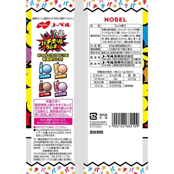 ノーベル製菓 パチボールラムネ ドリンクアソート 60g ×6袋
