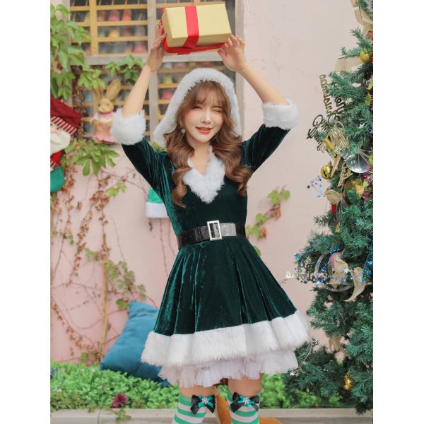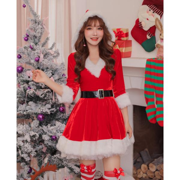 サンタワンピース ベルト付き 全2色 クリスマス 赤 サンタコス サンタ服 コスプレコスチューム サンタ衣装 サンタクロース 仮装 可愛い きれいめ キュート