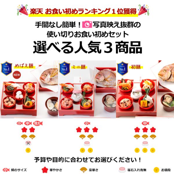 お食い初め料理セット 女の子用【黒色】│鯛サイズ変更可 蛤 歯固め石 使い捨てお祝い膳食器付 百日祝い撮影にぴったり|ARフォトフレームサービス中