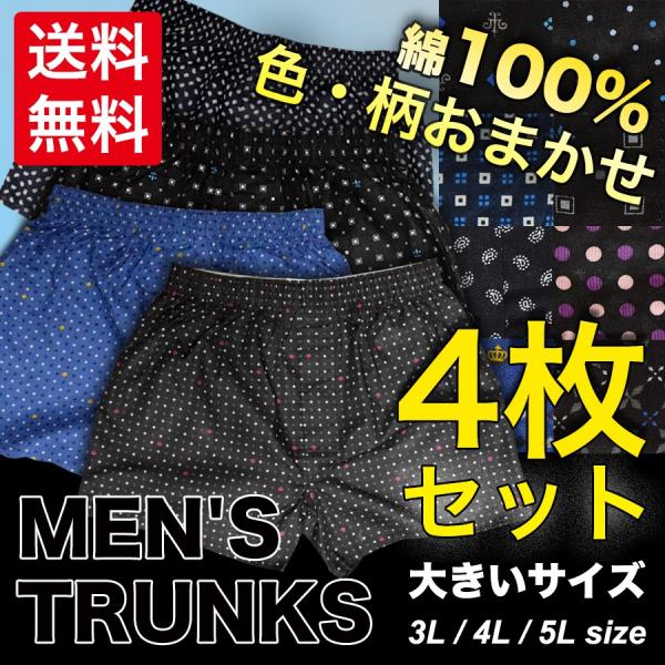 抗菌防臭加工 プリント トランクス 大きいサイズ メンズ 4枚セット 綿100% 3L 4L 5L