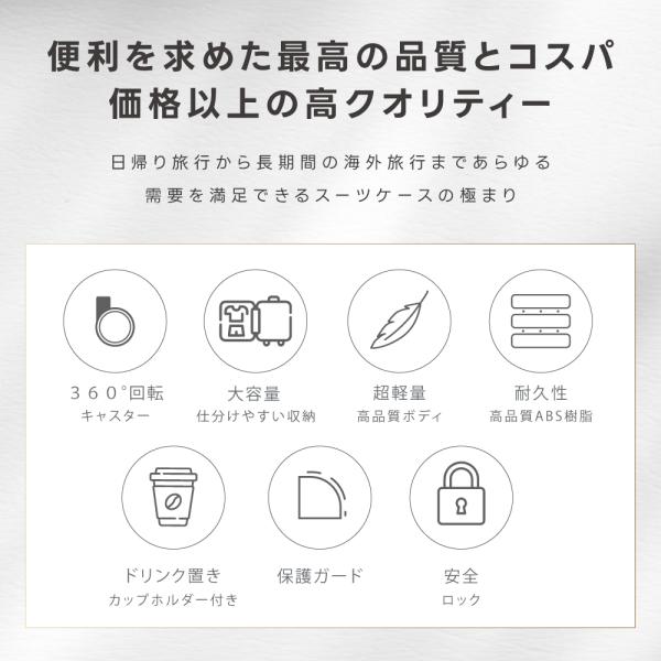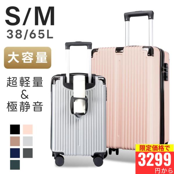 スーツケース S/Mサイズ 耐衝撃 キャリーバッグ 機内持ち込み 収納ポケット 耐衝撃 超軽量 360度回転 静音 ダブルキャスター カップホルダー付き 旅行 sc506