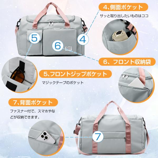 ボストンバッグ レディース メンズ 4WAY 7つポケット 旅行バッグ カバン 大容量 キャリーオンバッグ スポーツバッグ 乾湿分離 シューズ収納 機内持ち込み