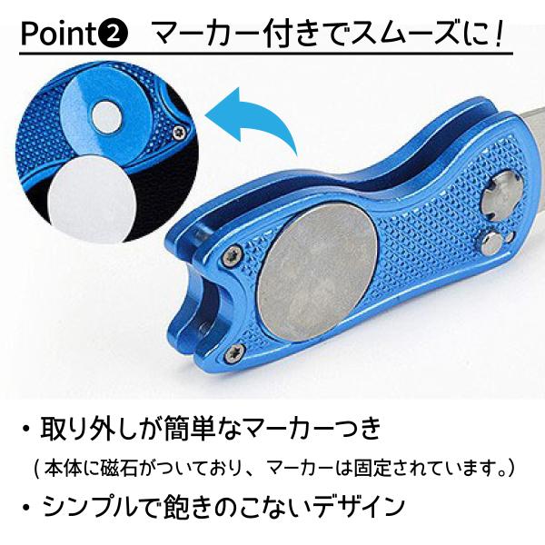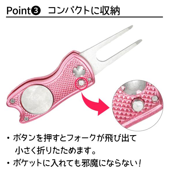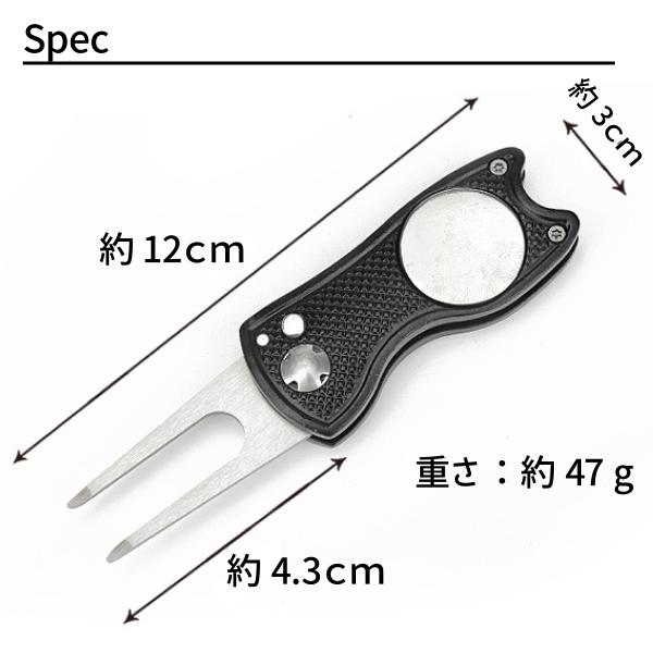 ゴルフ グリーンフォーク 収納 ゴルフフォーク マーカー付き 折りたたみ式 グリーンマーカー ゴルフ用品 リペアツール ピッチマーク ラウンド用品 コンペ 景品