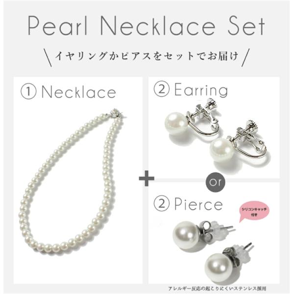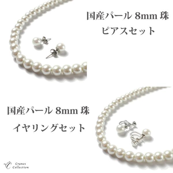 日本製 パール 真珠 ネックレス イヤリング ピアス 2点セット 冠婚葬祭 8mm フォーマル 結婚式 卒業式 葬式 法事 ギフト セレモニー 巾着袋付 七五三