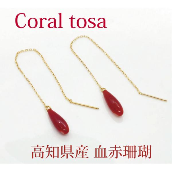 ≪希少≫土佐珊瑚 高知県産血赤サンゴ ティアドロップピアス 珊瑚婚式 高知県珊瑚協同組合保証書付 hawks202110