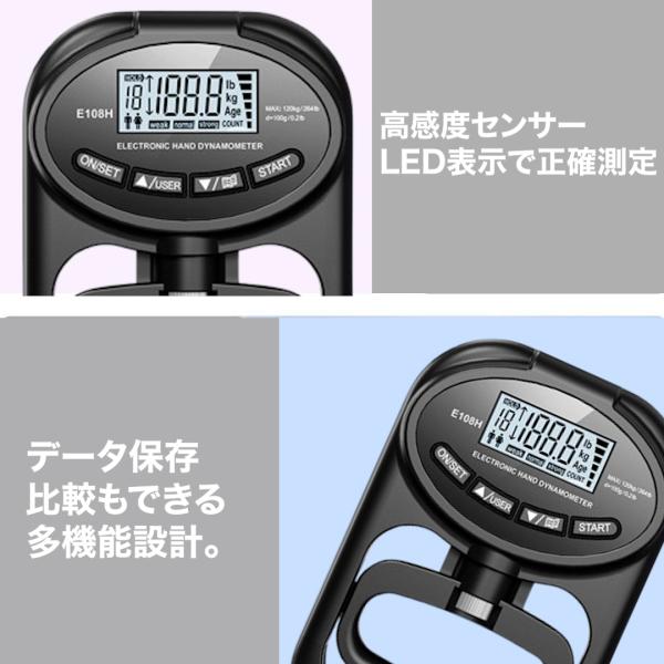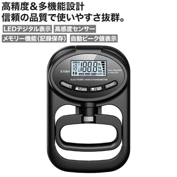デジタル握力計 握力測定器 最大120kg 調整可能グリップ LCD表示 握力トレーニング 計測器 筋力測定 スポーツ