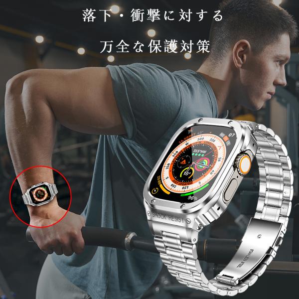 Apple Watch Ultra バンド 保護ケース付き 49mm アップルウォッチ Ultra バンド 49mm 高級 ステンレス おしゃれ メンズ 49mm かっこいい【適格請求書発行可】