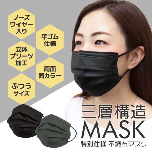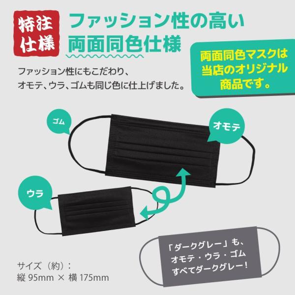 マスク 不織布マスク 黒 グレー 50枚 ブラック ゴム紐も同色 使い捨て 耳が痛くなりにくい 平ゴム 両面同色 カラーマスク