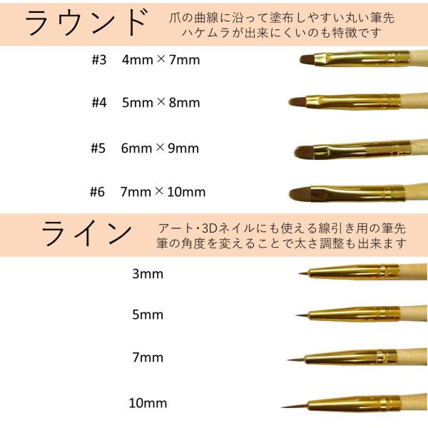 ネイルブラシ 筆 キャップ付き 選べる20種 フレンチ 平筆 ラウンド ライン ネイルアート ウッド ネイル筆 木