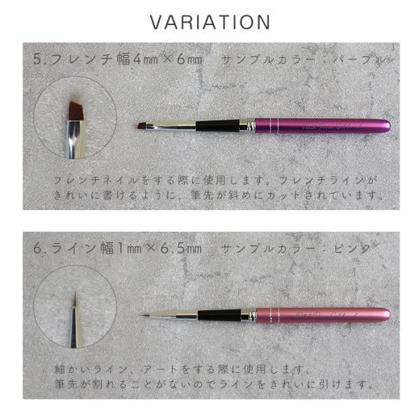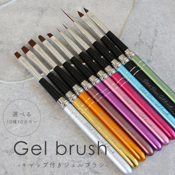ネイル ジェルネイル ネイルブラシ 10種10カラー キャップ付 ブラシ 平筆 ラウンド フレンチ