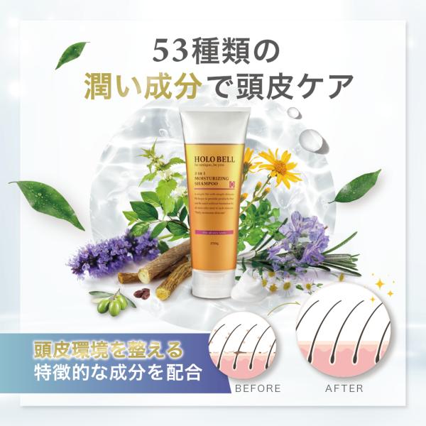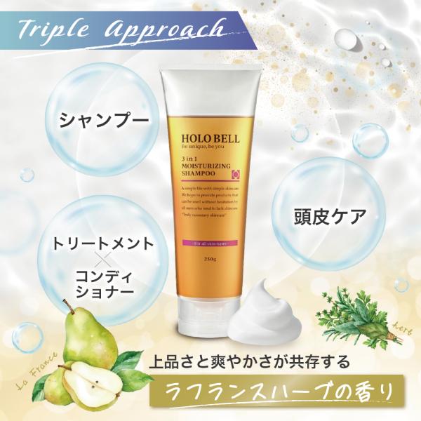 シャンプー メンズ オールインワン HOLO BELL(ホロベル) 3in1 保湿シャンプー 無添加 濃密泡 ノンシリコン 弱酸性 ラフランスハーブの香り 250g
