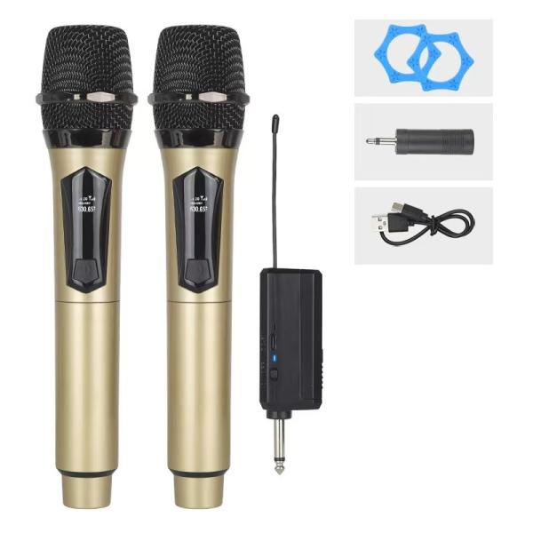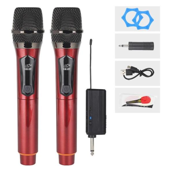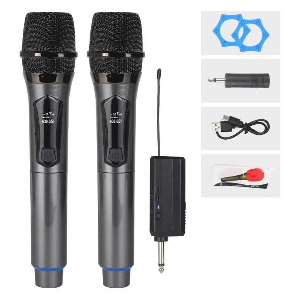 ワイヤレスマイク カラオケ 2本セット ダイナミックマイク ハンドヘルド型 メタル 無線 ミニレシーバ付き ジャック カラオケ/パーティー/ステージ