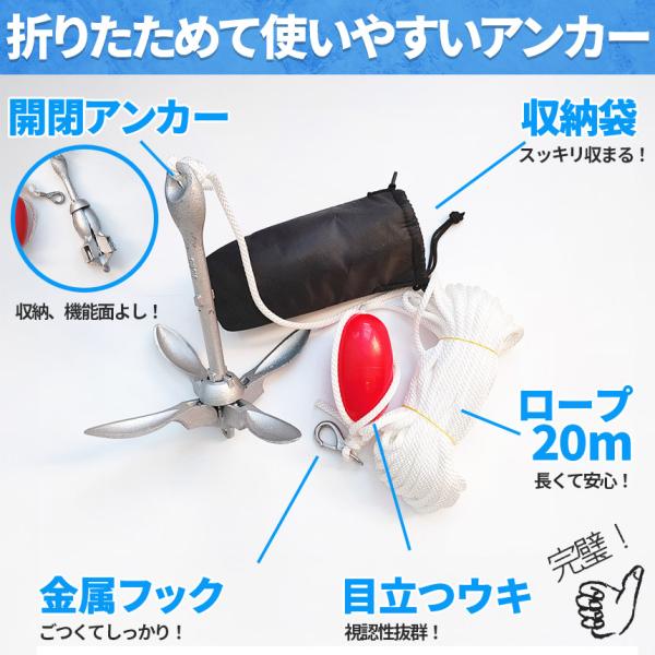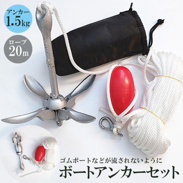 爆買 アンカー ボート フォールディングアンカー 20m ロープ 収納ケース 浮き 1.5kg 31x28cm ゴムボード カヤック シーアンカー パ