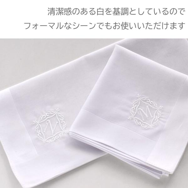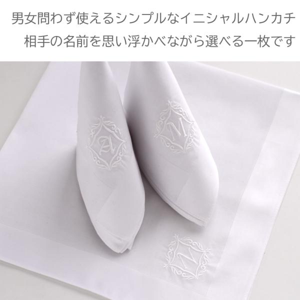 イニシャルコットンハンカチ 白 ギフト | ハンカチーフ 結婚式 フォーマル 冠婚葬祭 プレゼント 刺繍 誕生日プレゼント 名入れ お祝い 内祝い