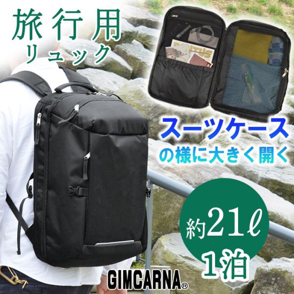 旅行用 リュック 旅行バッグ 1泊 約20l 約20リットル メンズ レディース 軽量 黒 トラベルバッグ リュックサック シンプル KBN42560