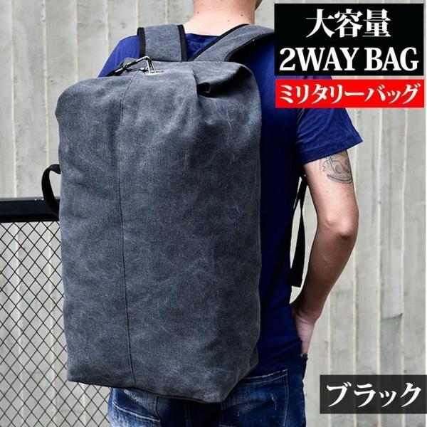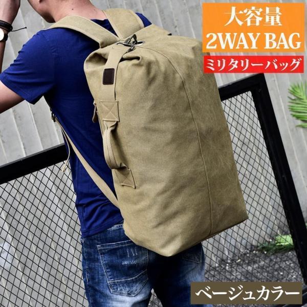 ミリタリーリュック 大容量 2WAY バッグ ベージュ アーミーグリーン ブラック ボストンバッグ リュックサック 旅行 登山 キャンプ アウトドア 防災 通勤 通学