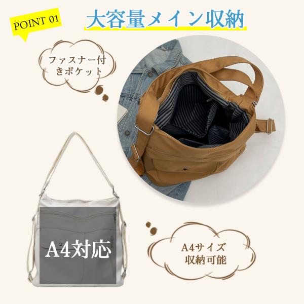 ショルダーバッグ リュック 3way レディース ファスナー 斜めがけ ナイロンバッグ 軽量 トートバッグ a4 通勤 カンバス 父の日 爆買