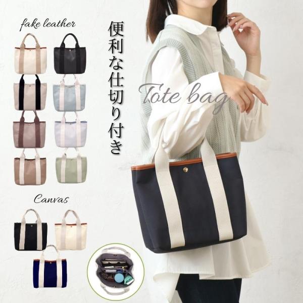 仕切り付き ミニ トートバッグ 合皮 キャンバス 多収納 シンプル レディース 小さめ シンプル 軽い おしゃれ かわいい 女性 s031