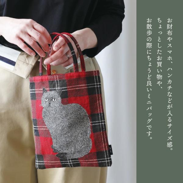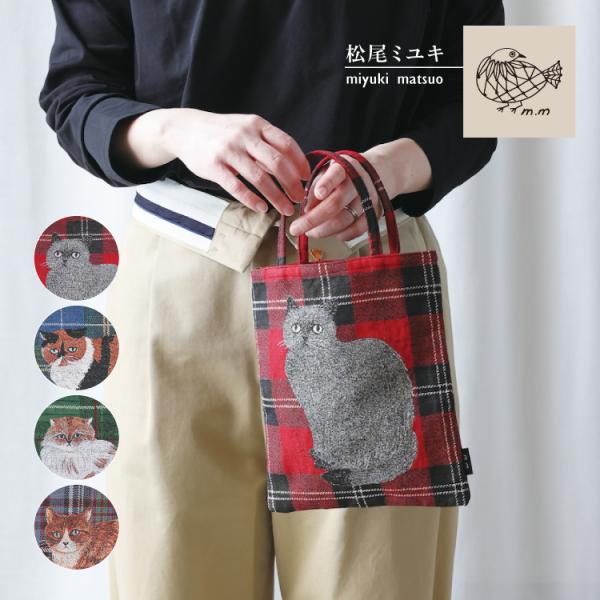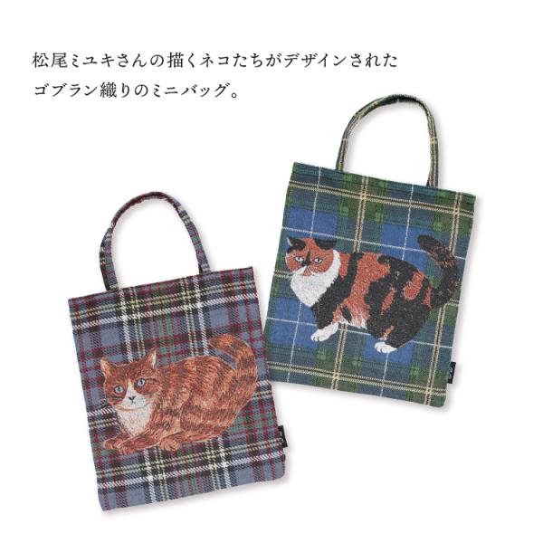 松尾ミユキ ミニトート | Matsuo Miyuki ミニバッグ 全4種 | タータンチェック 猫 ねこ 小さ目 サブバッグ ゴブラン織 かわいい おしゃれ